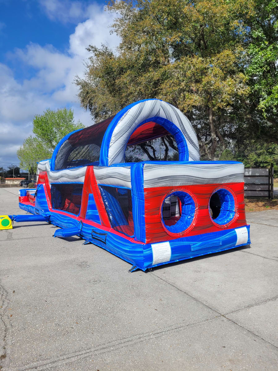 Our Baja Obstacle Course is part of the renowned Baja series, characterized by its vibrant red and blue colors. The bright red lanes add an extra touch of excitement, making it visually striking and attractive for everyone at the party. It's not just a course; it's an adventure waiting to happen! 🎉🎈